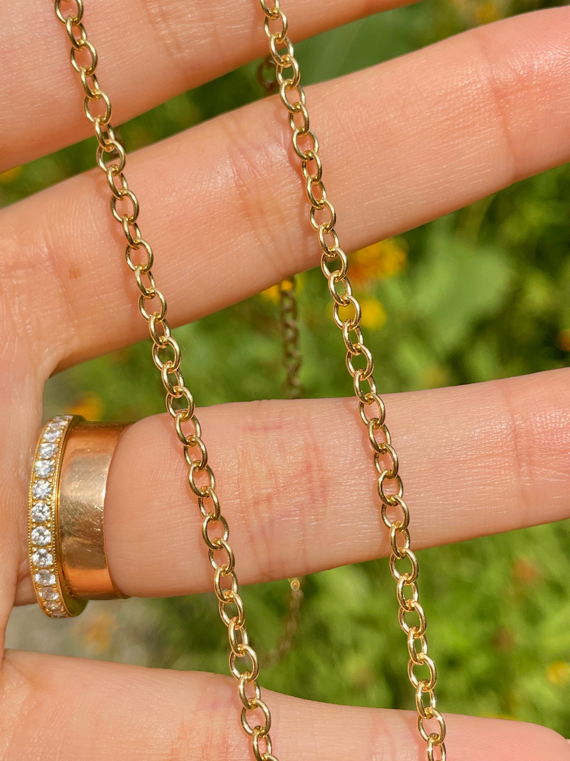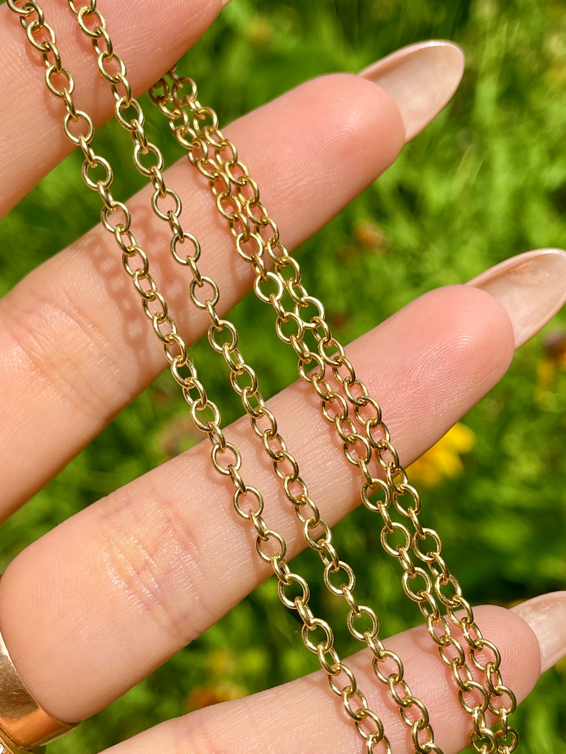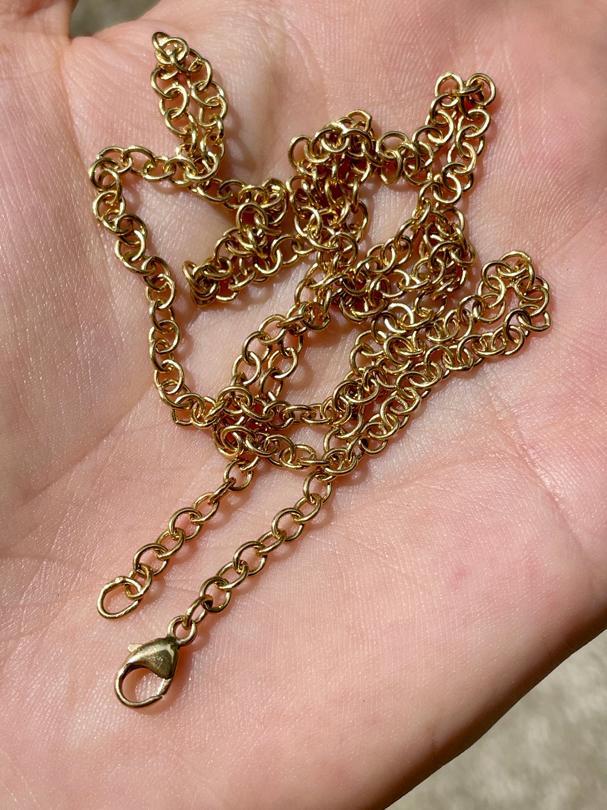 Vintage yellow 14K solid round link chain, 21.75 inch adjusts to any length