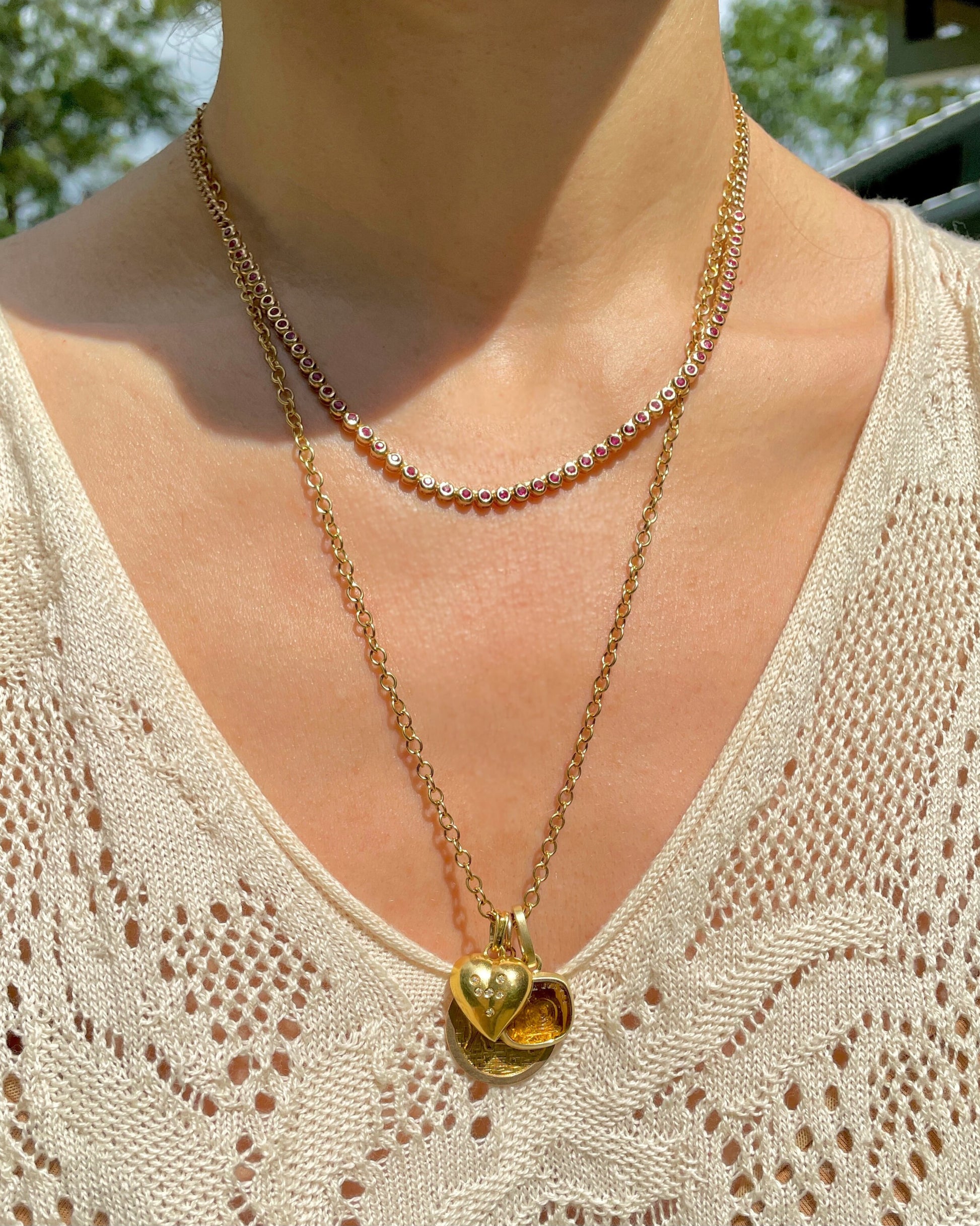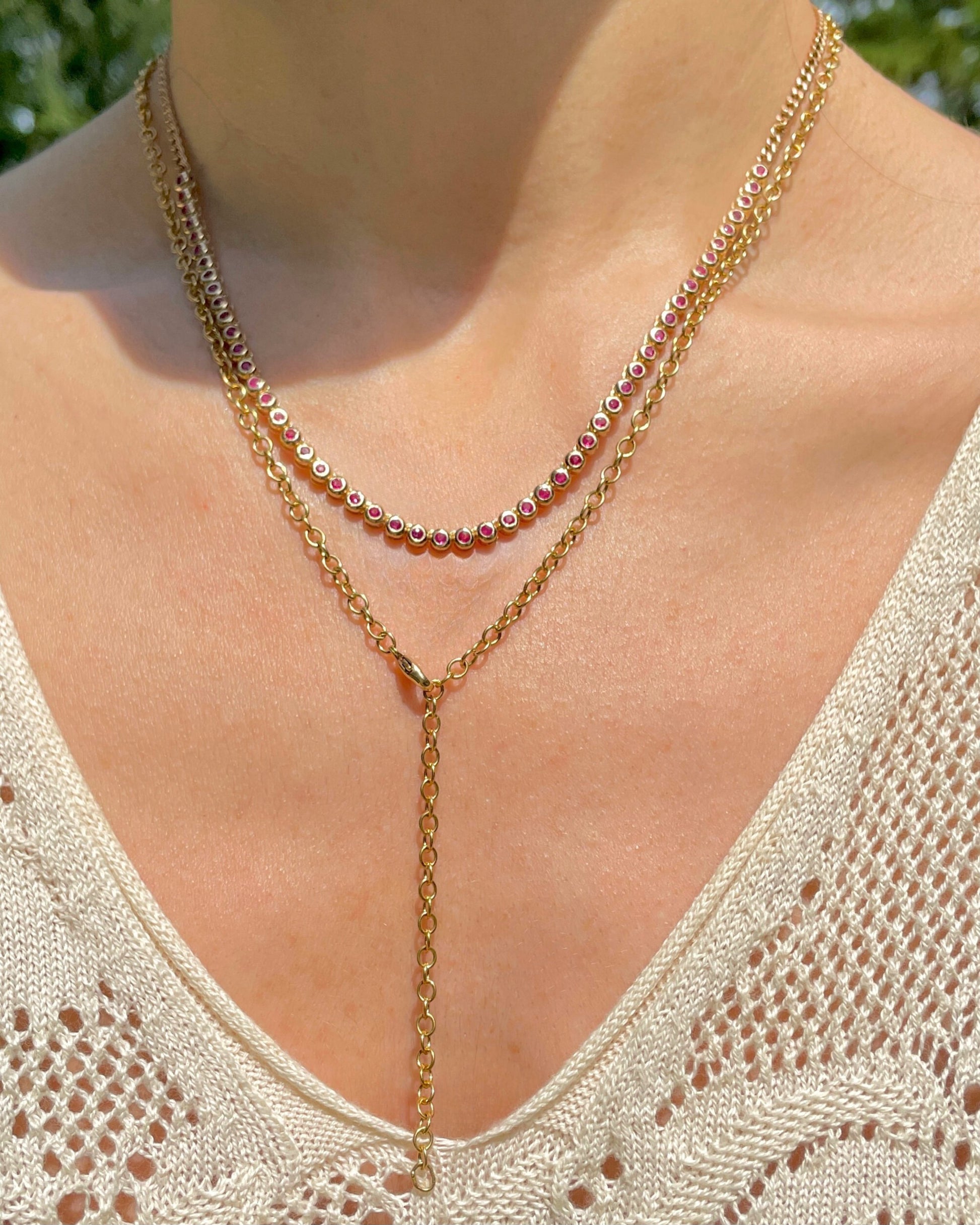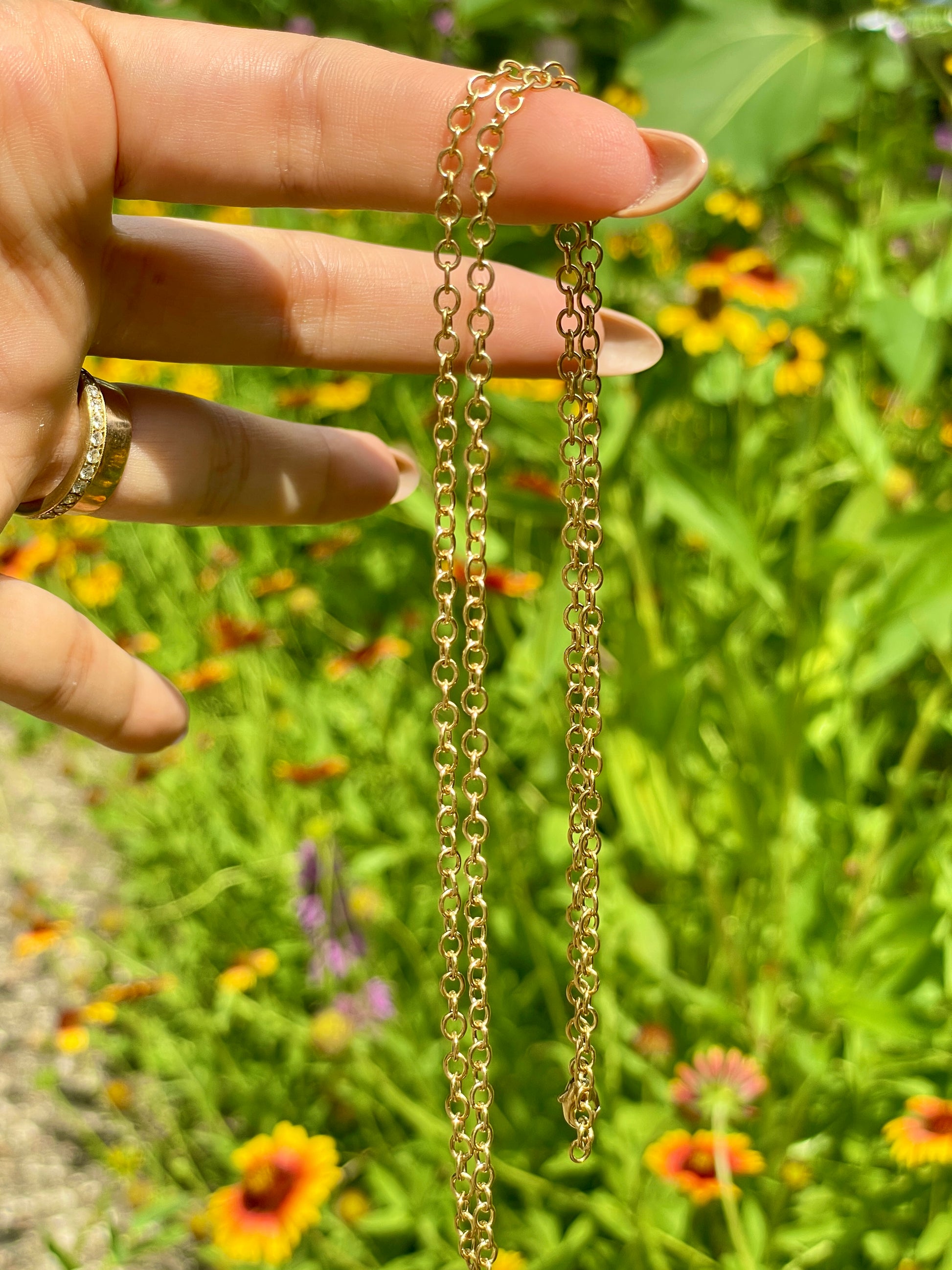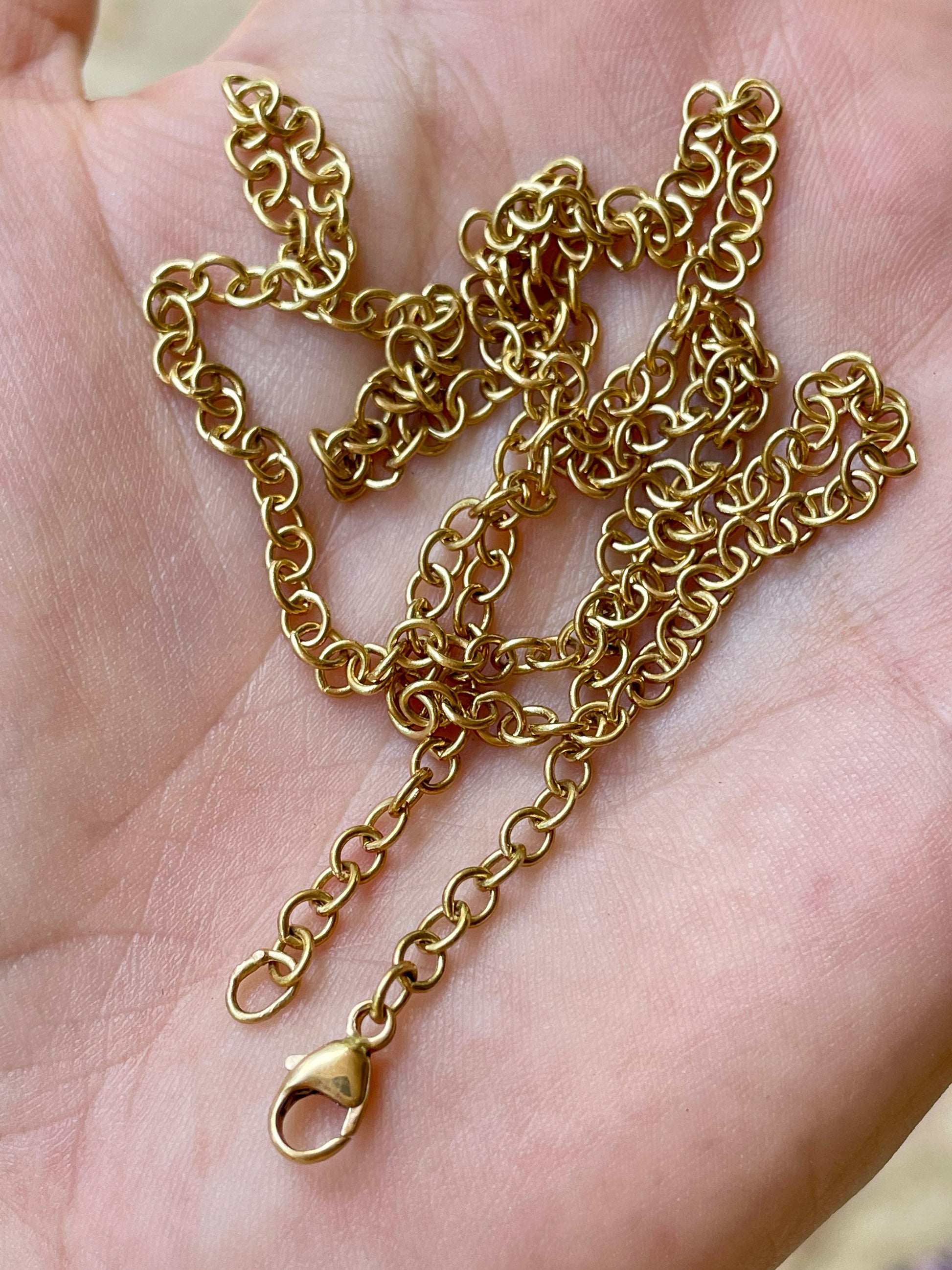 Vintage yellow 14K solid round link chain, 21.75 inch adjusts to any length