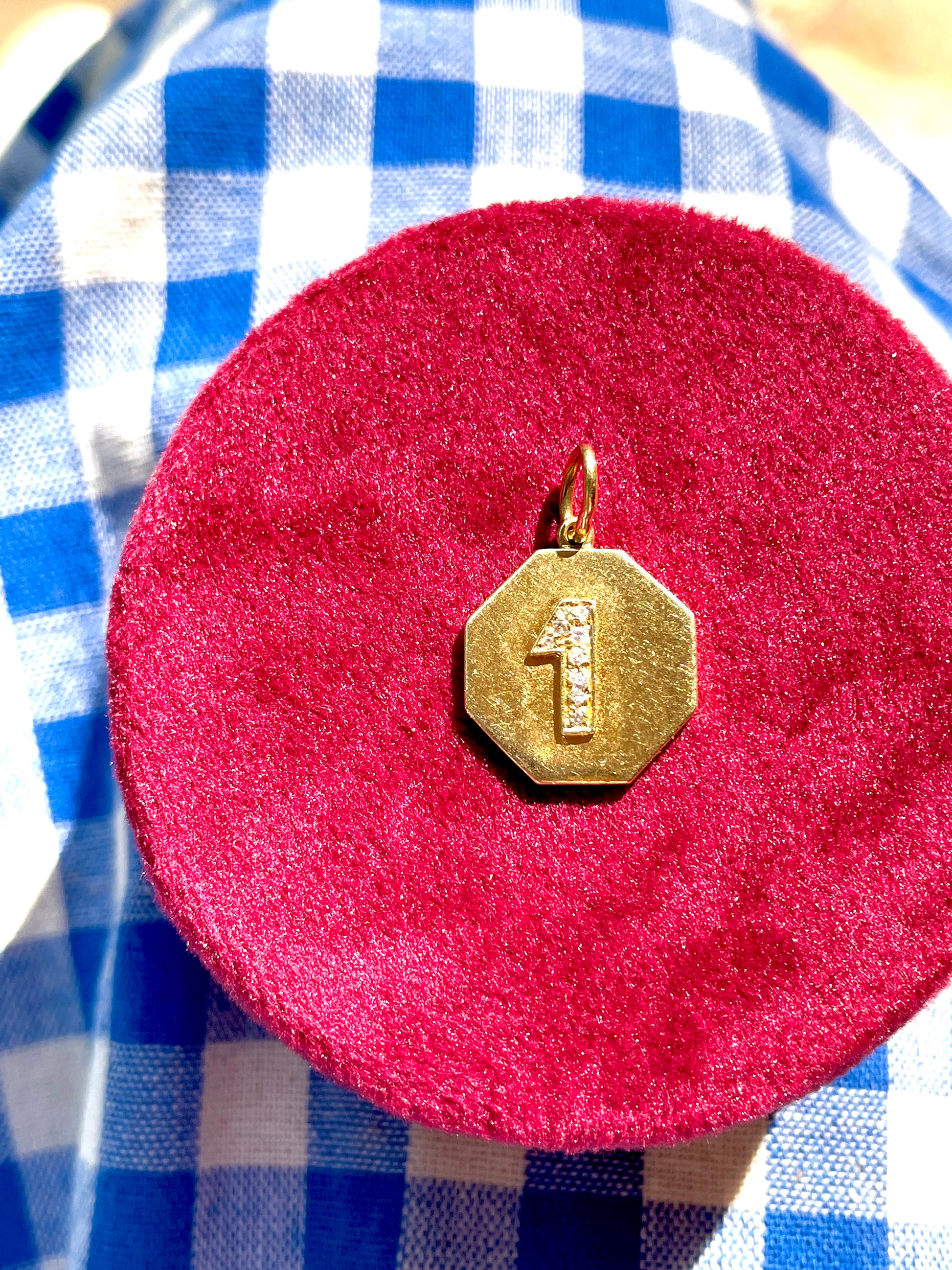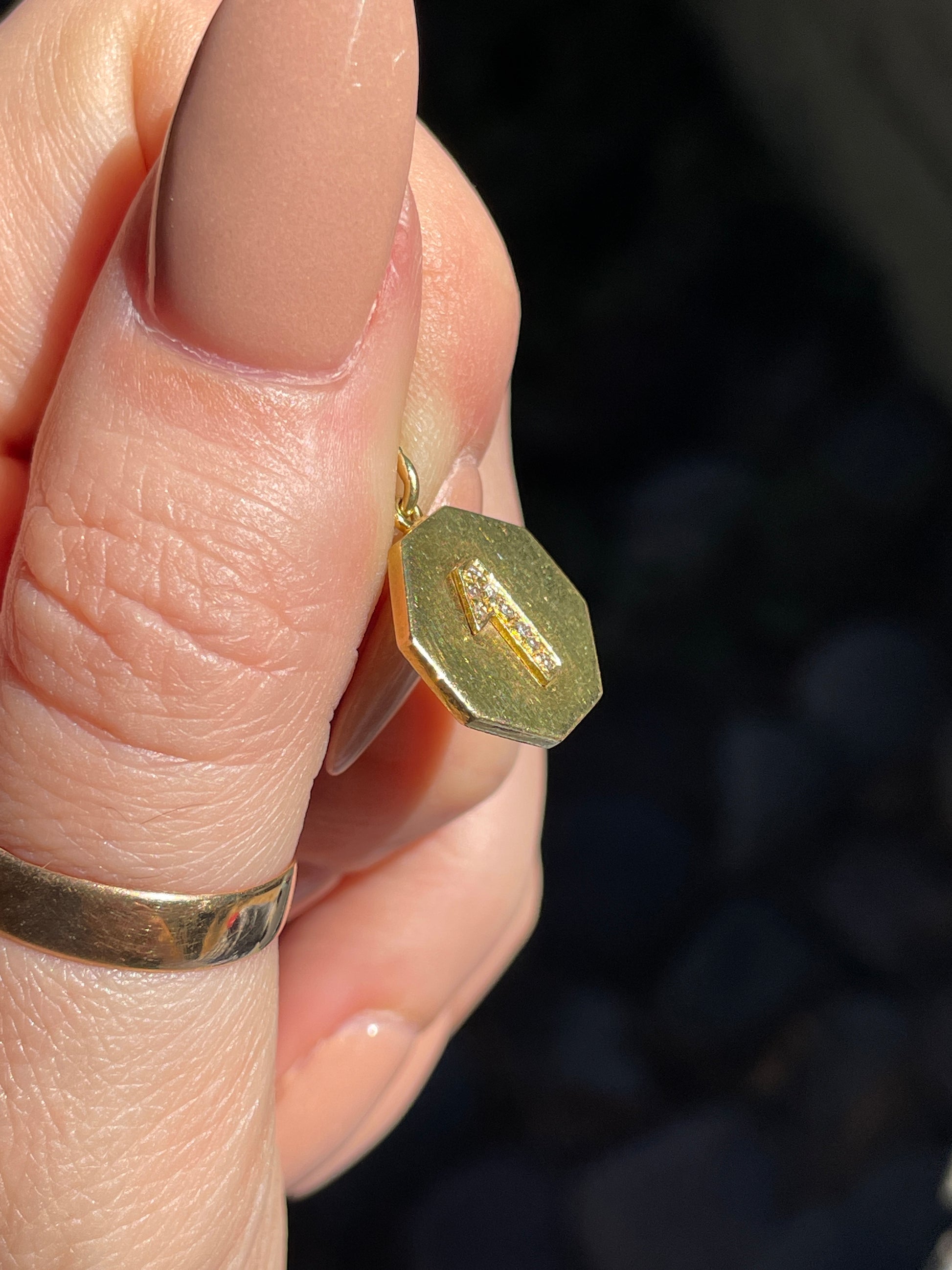 Vintage yellow 18K approx .04ctw diamond number 1 octagonal tag charm