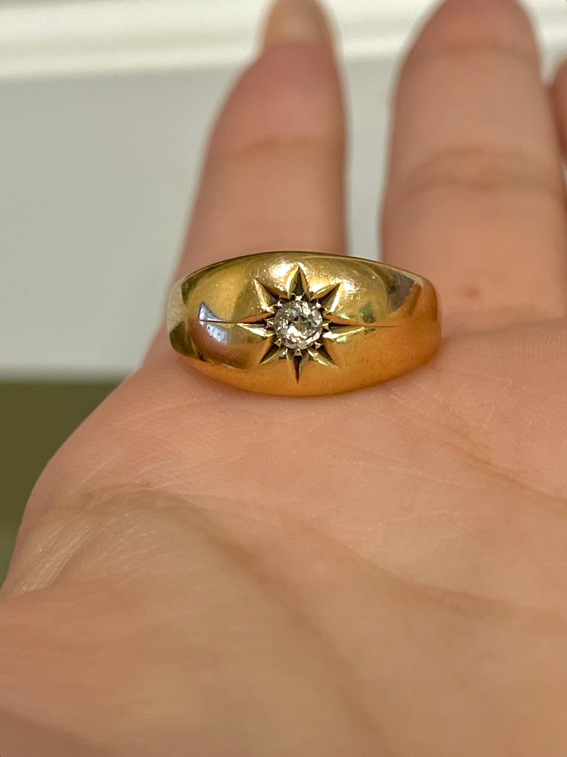 Vintage yellow 18K approx .14 ctw old European cut diamond star set band, size 6.75