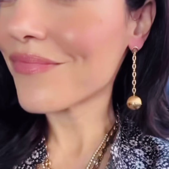 Vintage yellow 18K ball and chain post dangle earrings