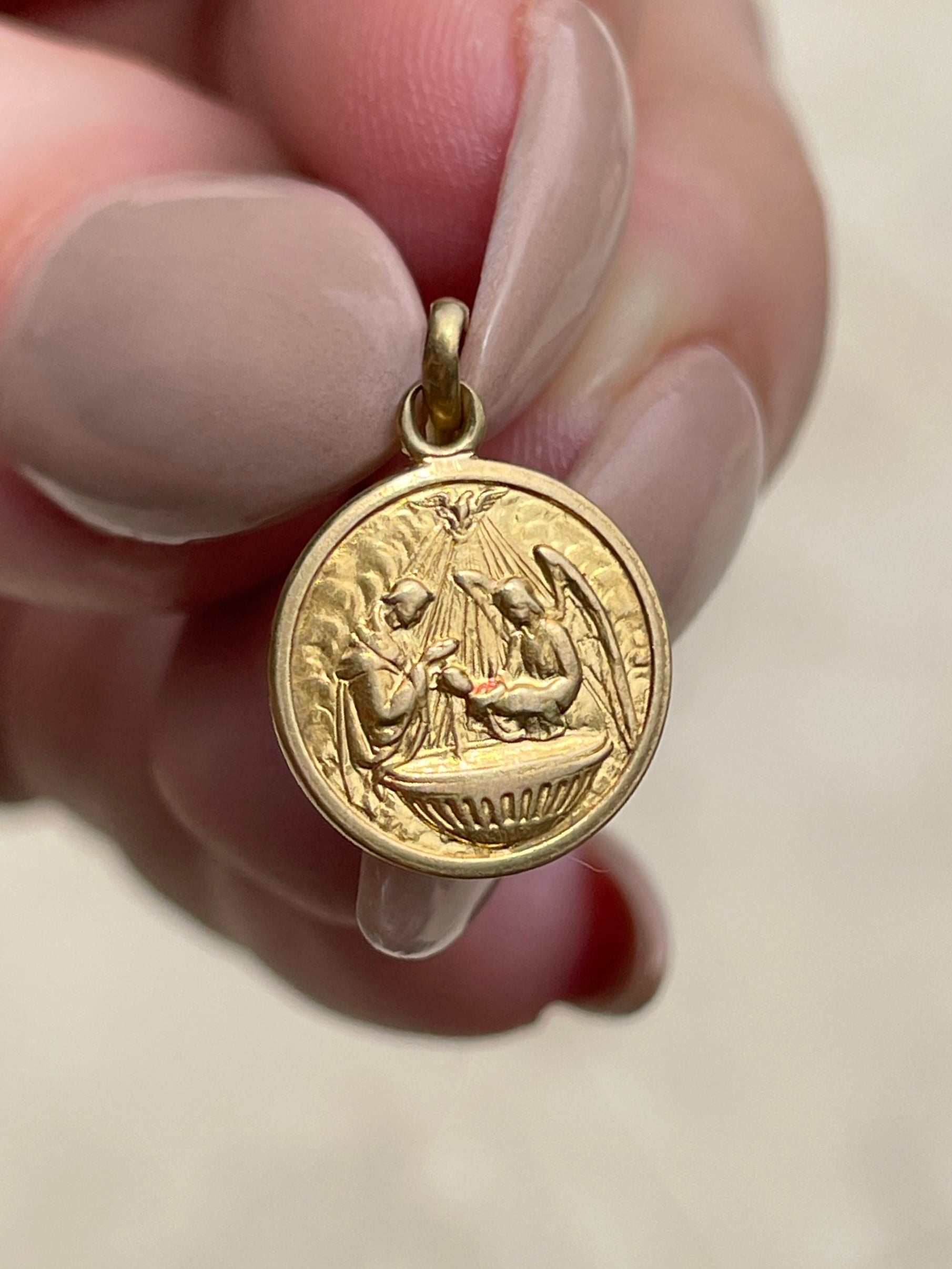 Vintage yellow 18K Baptism mini medal charm