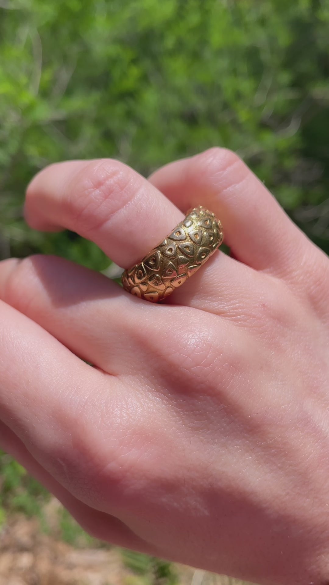 Vintage yellow 18K Chaumet Paris circa 1960s Carrouse wide donut band, size 6.25