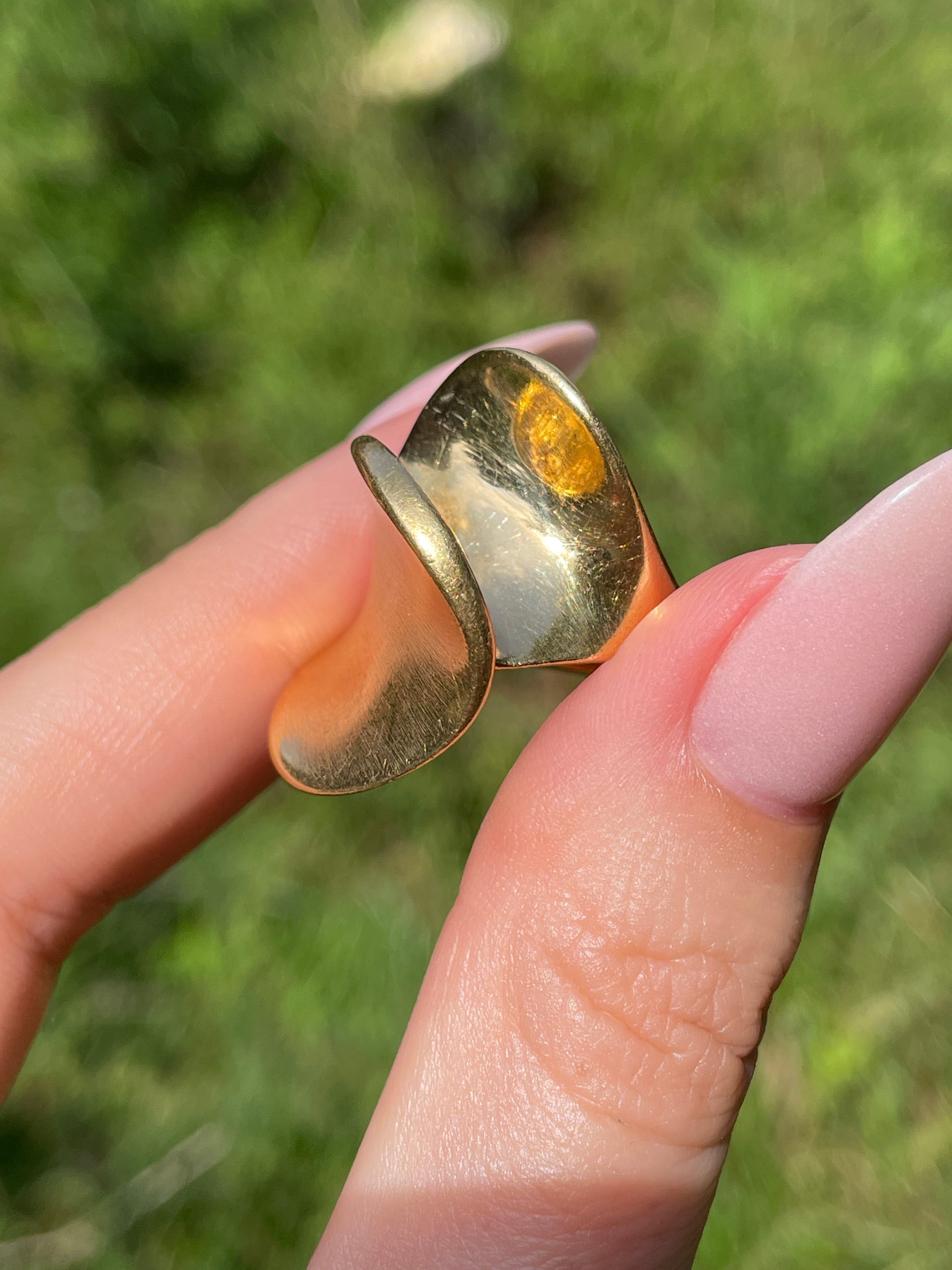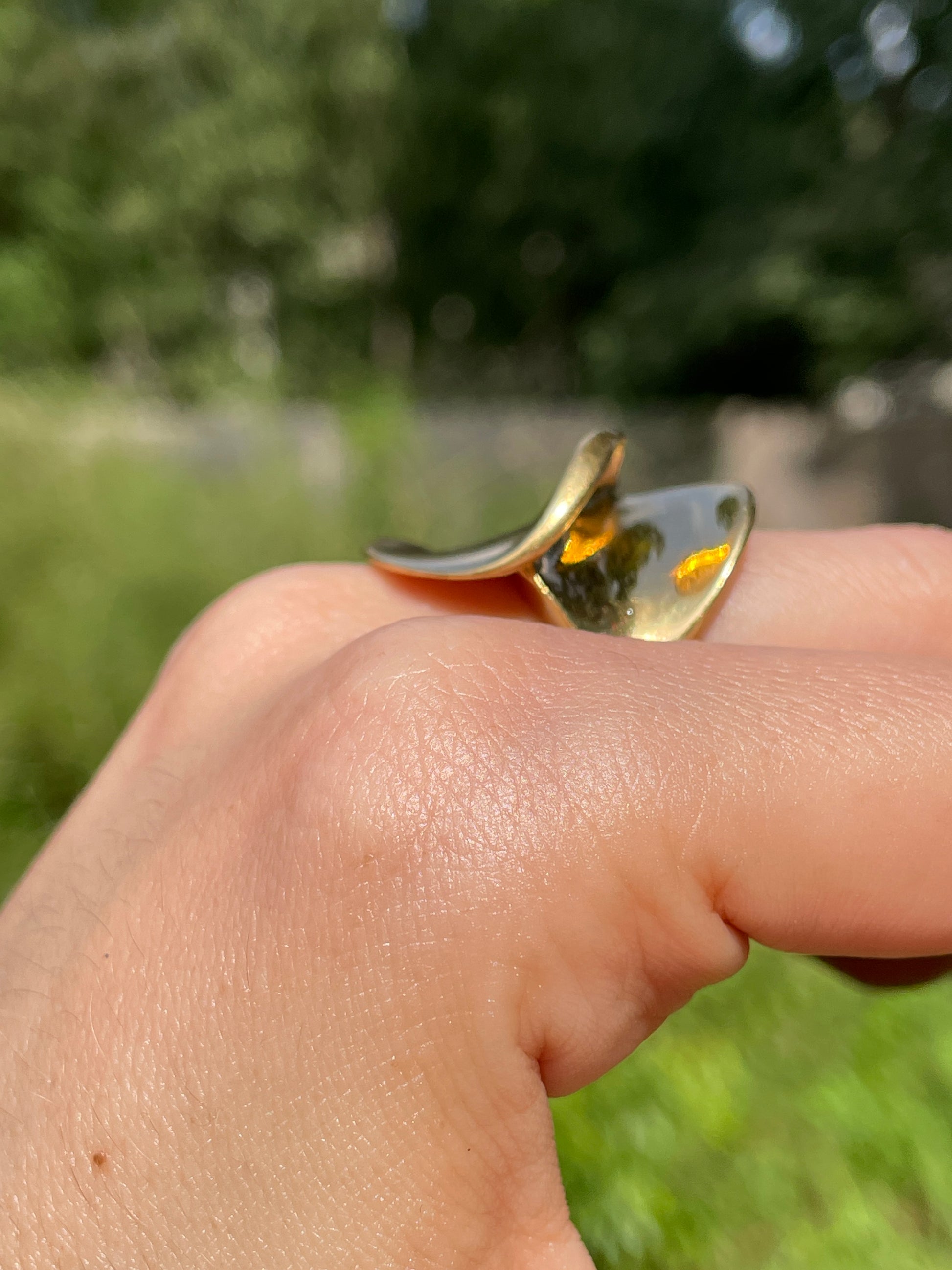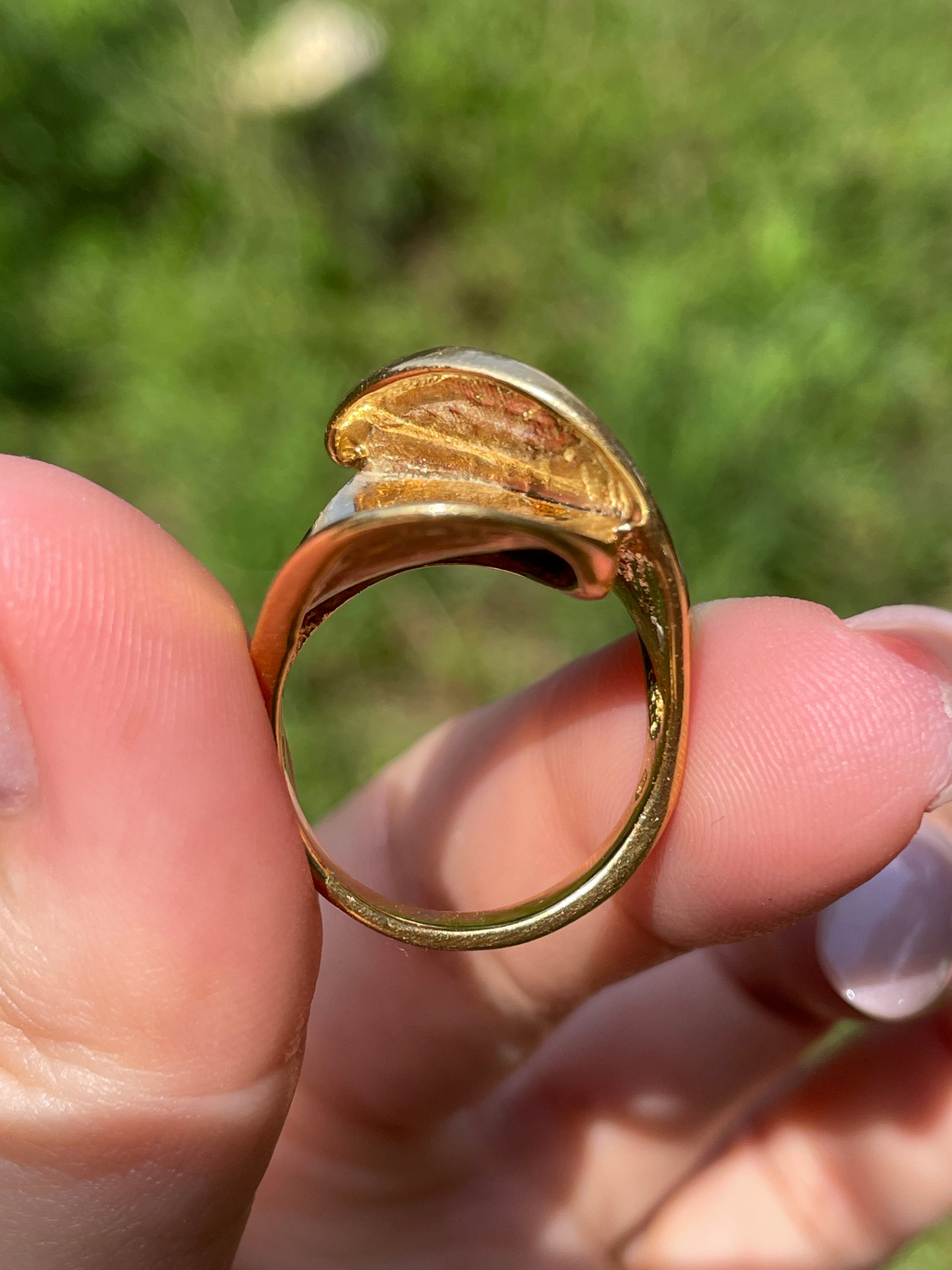 Vintage yellow 18K crossed petals ring, Size 6.25