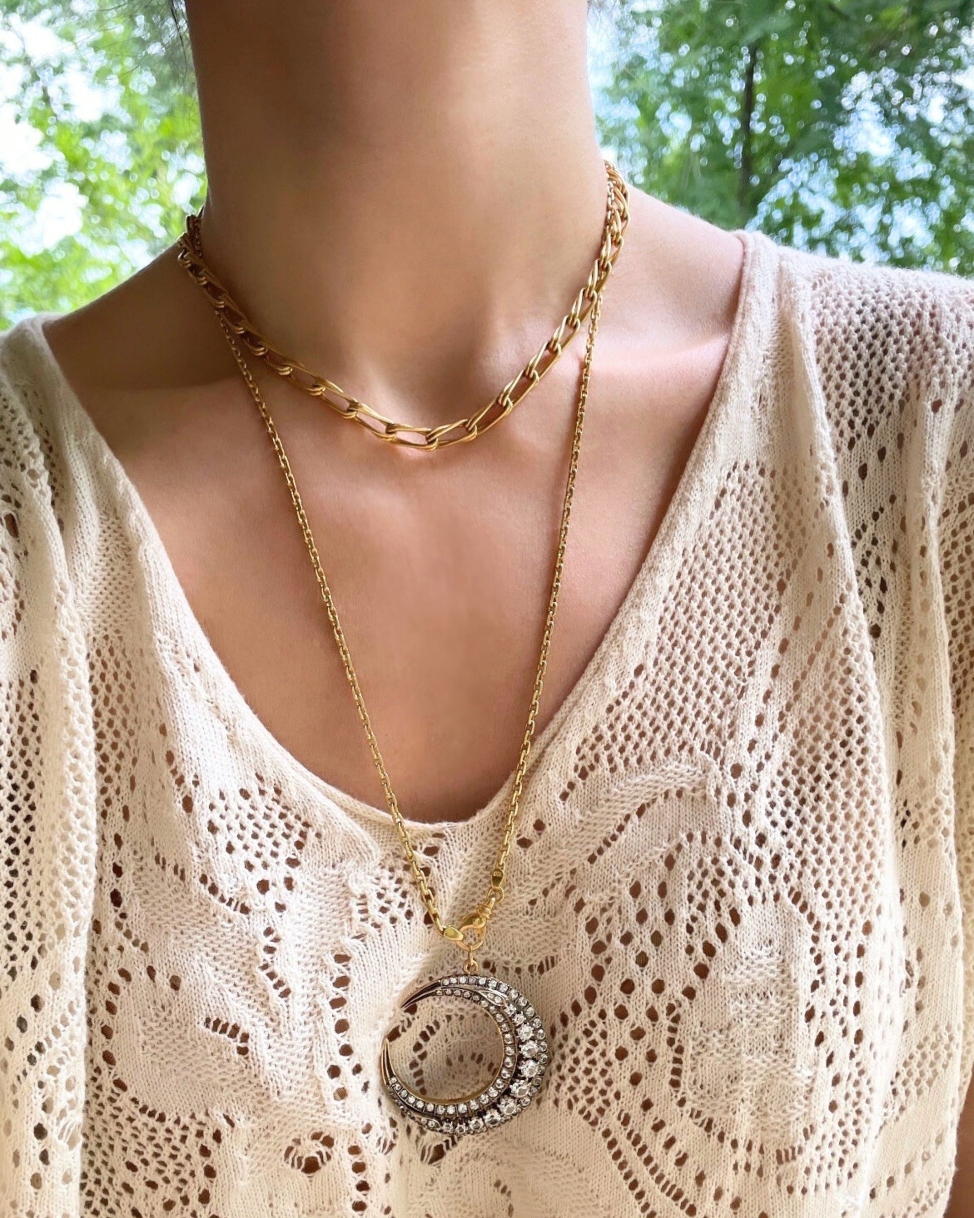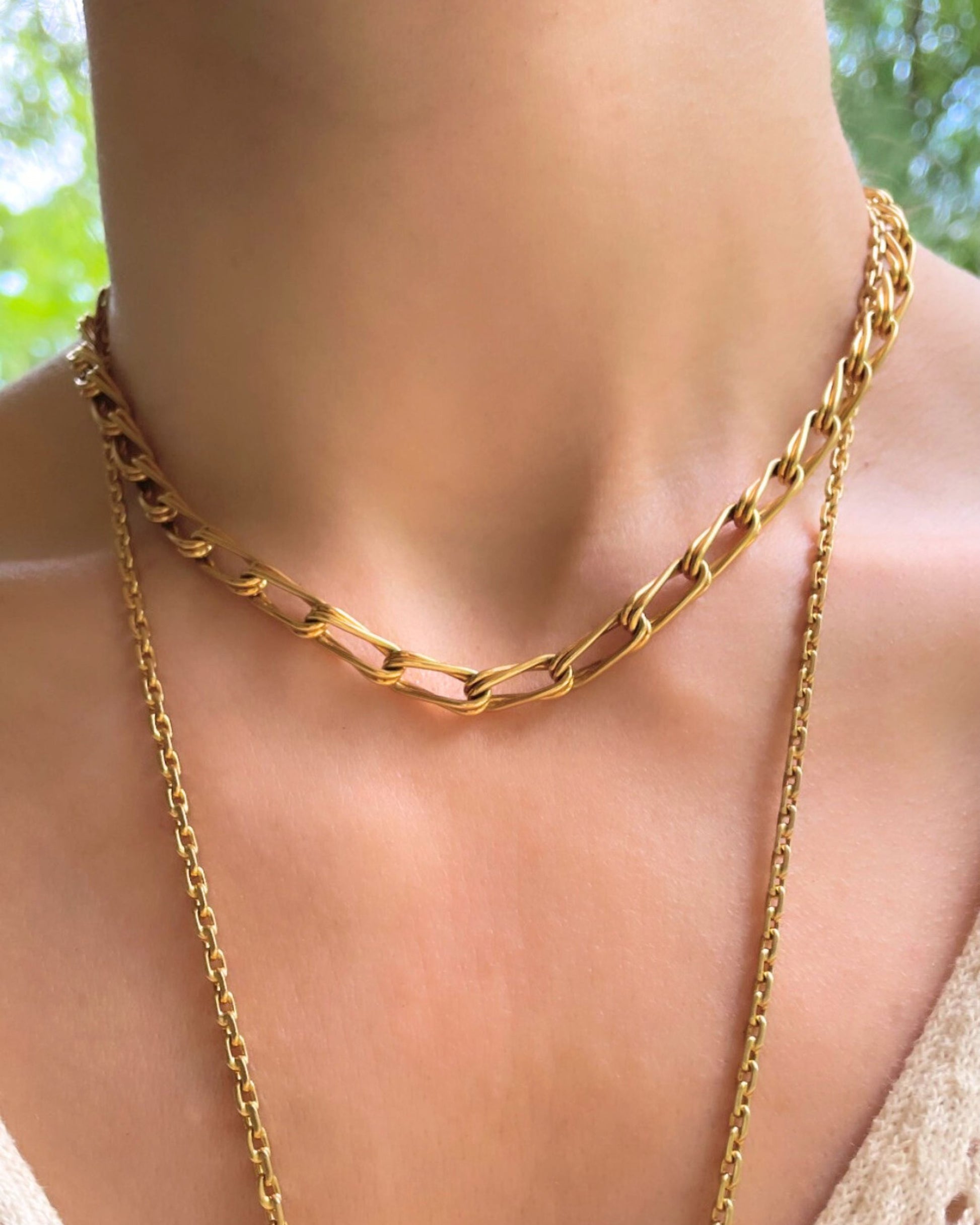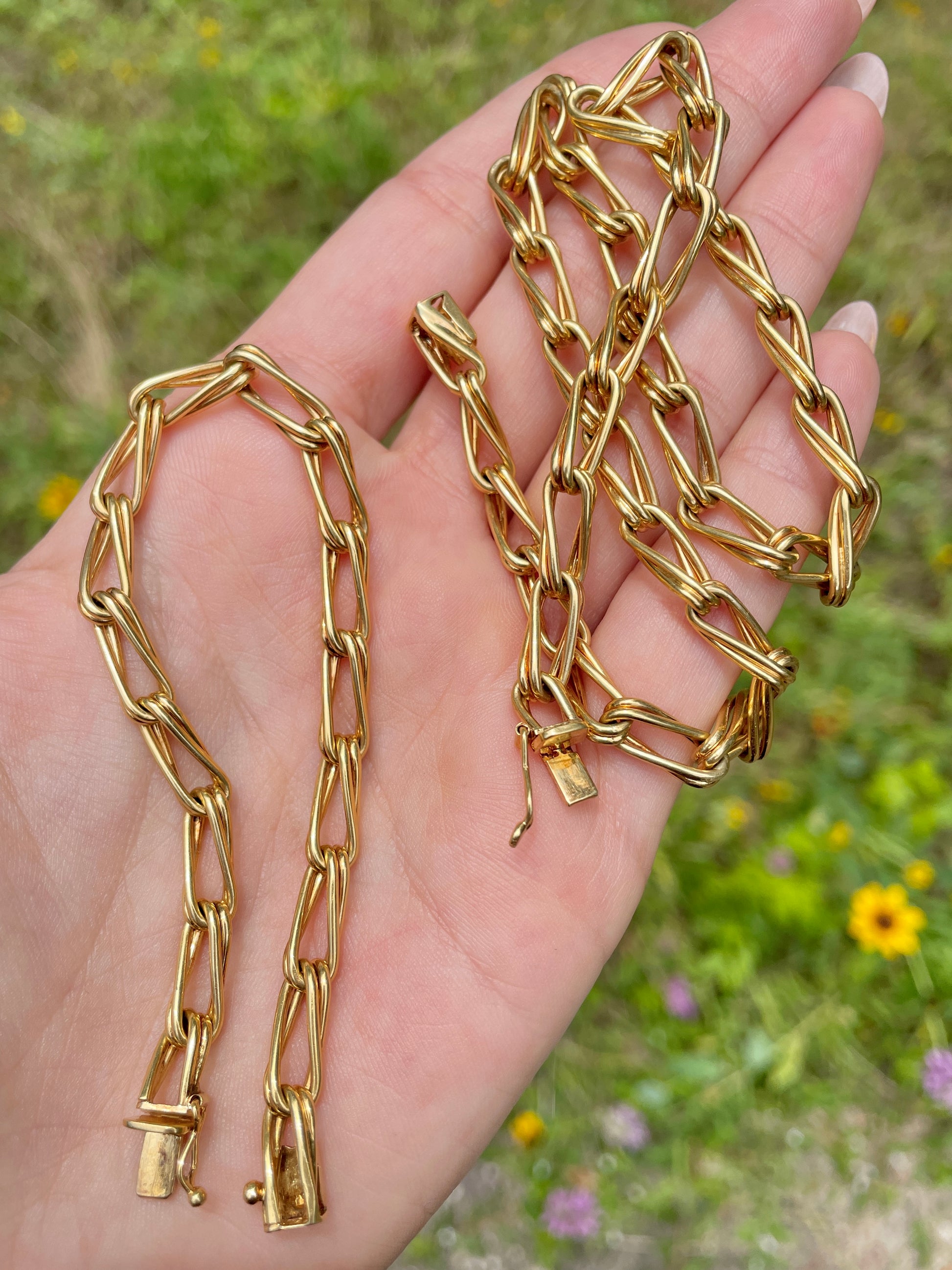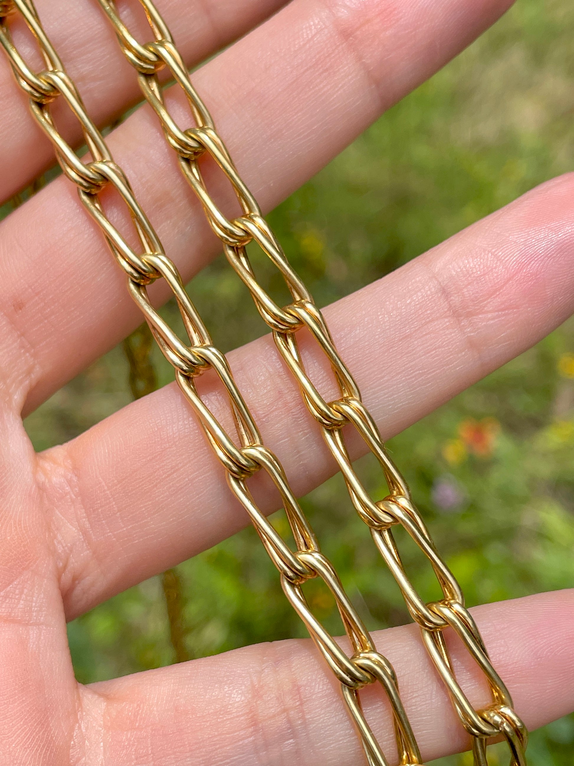 Vintage yellow 18K gold oval double link curb chain, 15 and 5/8 inch