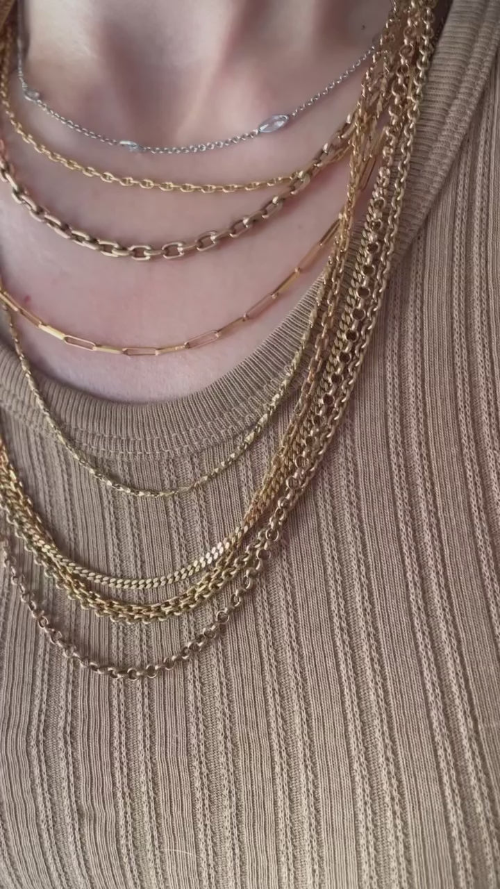 Vintage yellow 18K gold solid curb link chain, 23 and 5/8 inch