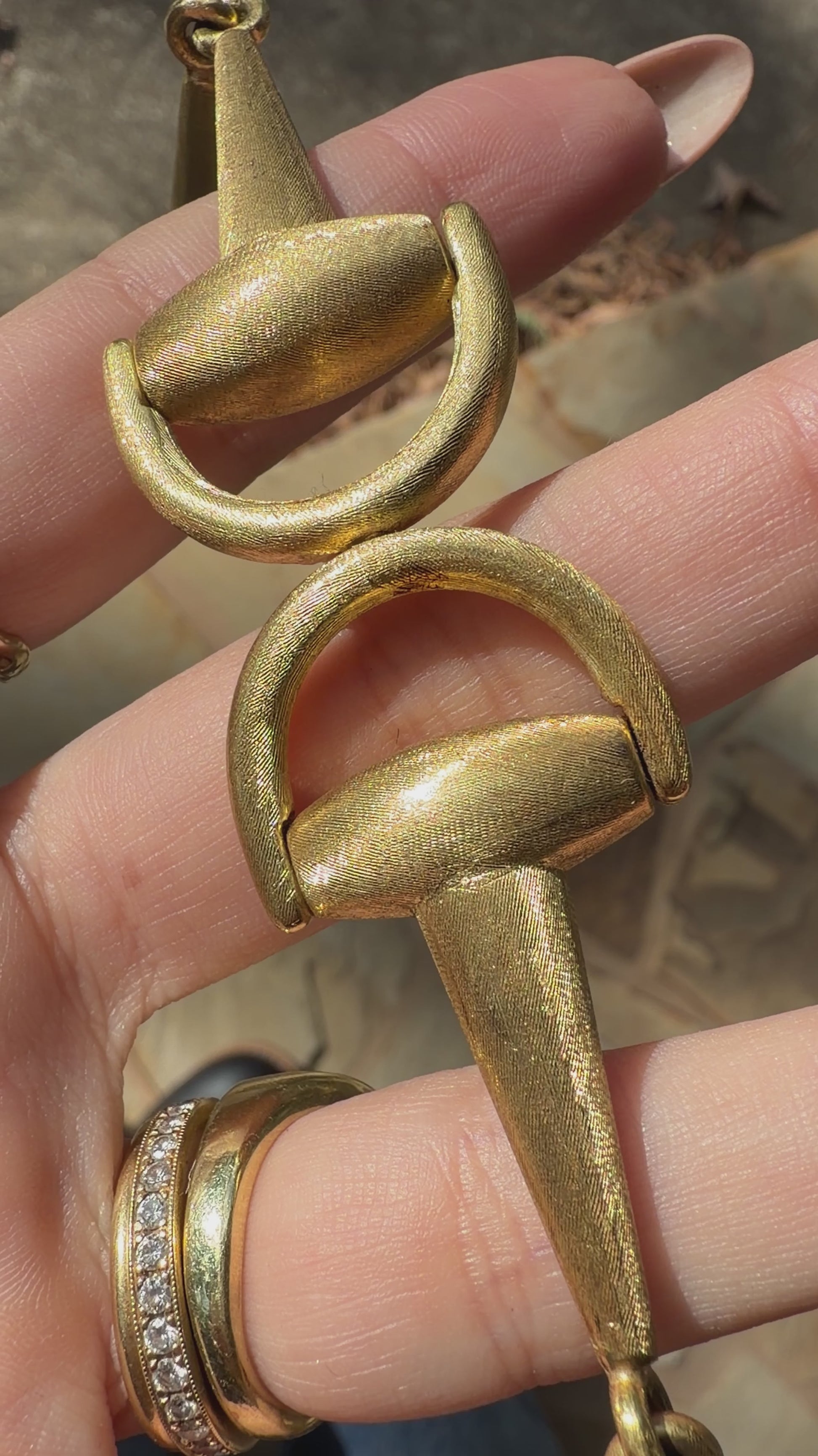Vintage yellow 18K horsebit bracelet with florentine finish, 6.5 inch fit