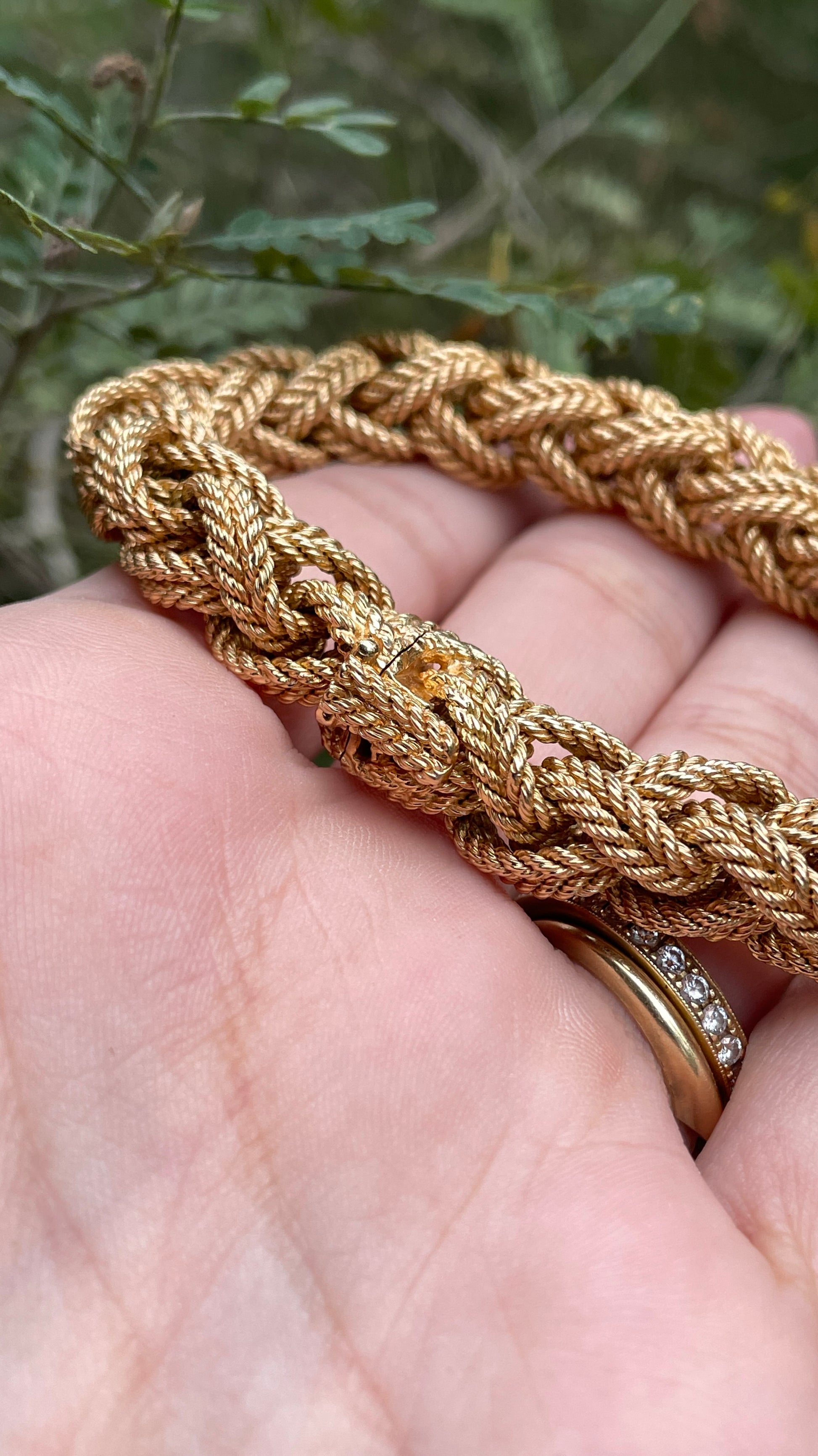 Vintage yellow 18K midcentury Tiffany woven bracelet, 7.5 inch