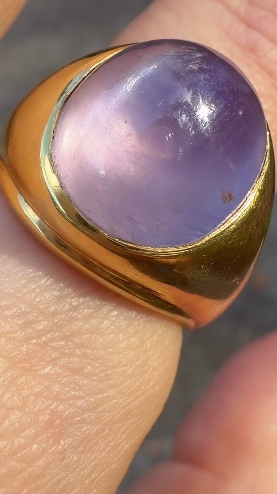 Vintage yellow 18K natural unheated 19.3 ctw purple pink sapphire cabochon ring, size 8.5 sizable