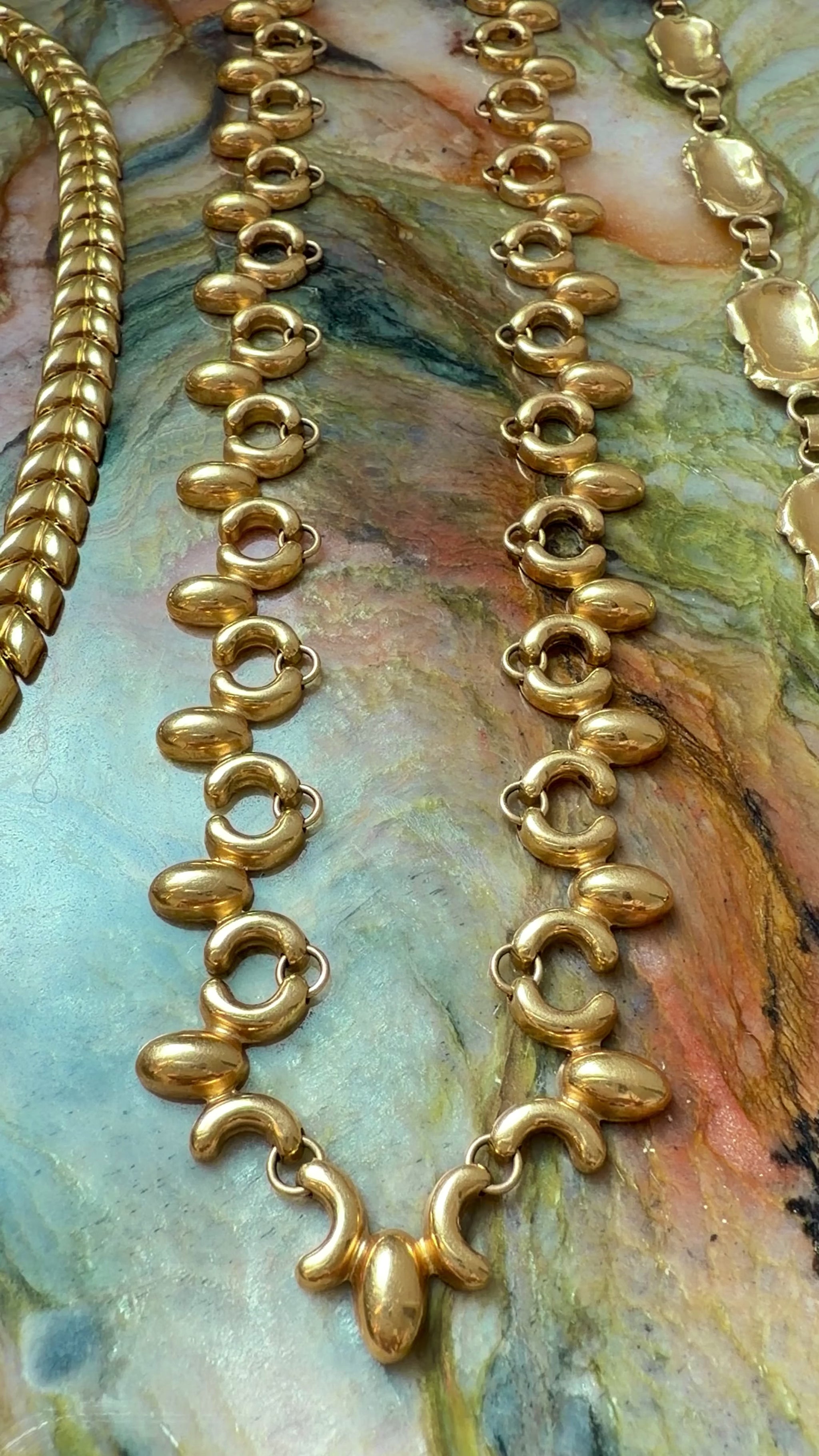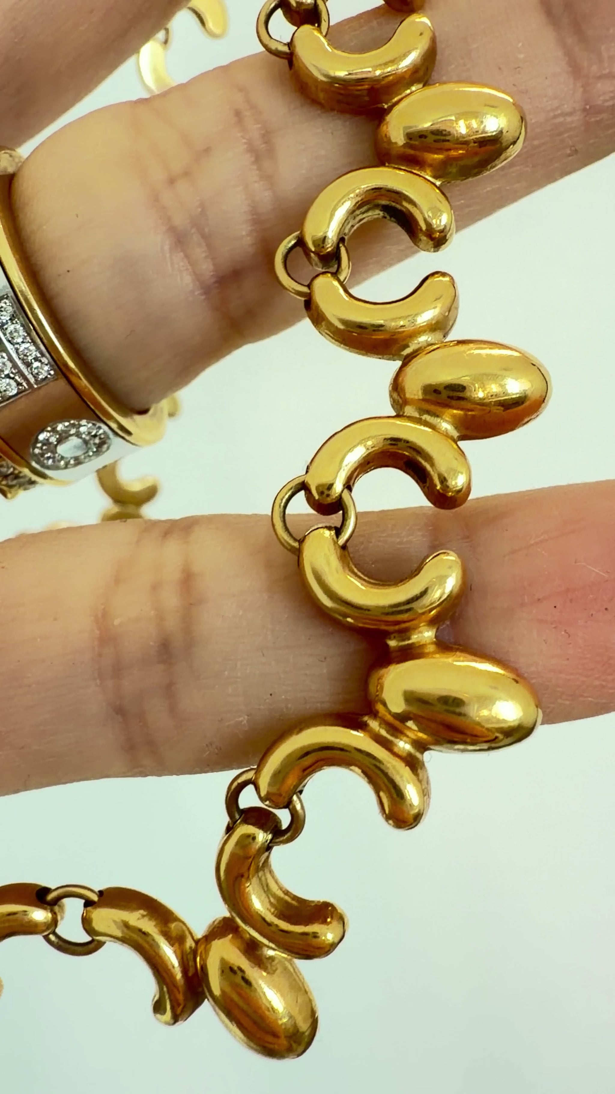 Vintage yellow 18K ornate articulated chain, 17.25 inch