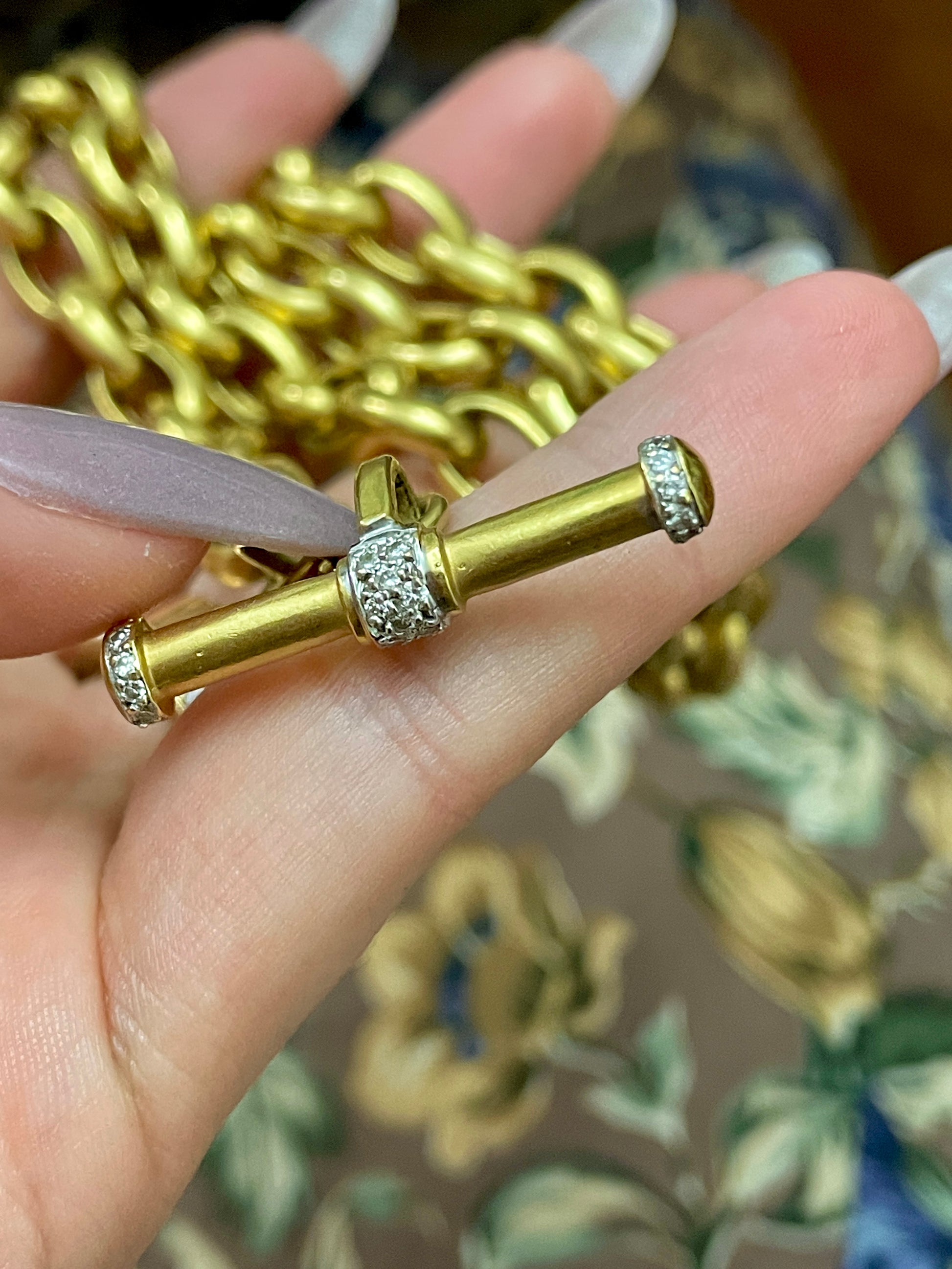 Vintage yellow 18K gold oval link and diamond toggle clasp chain, 18 and 1/8 inch