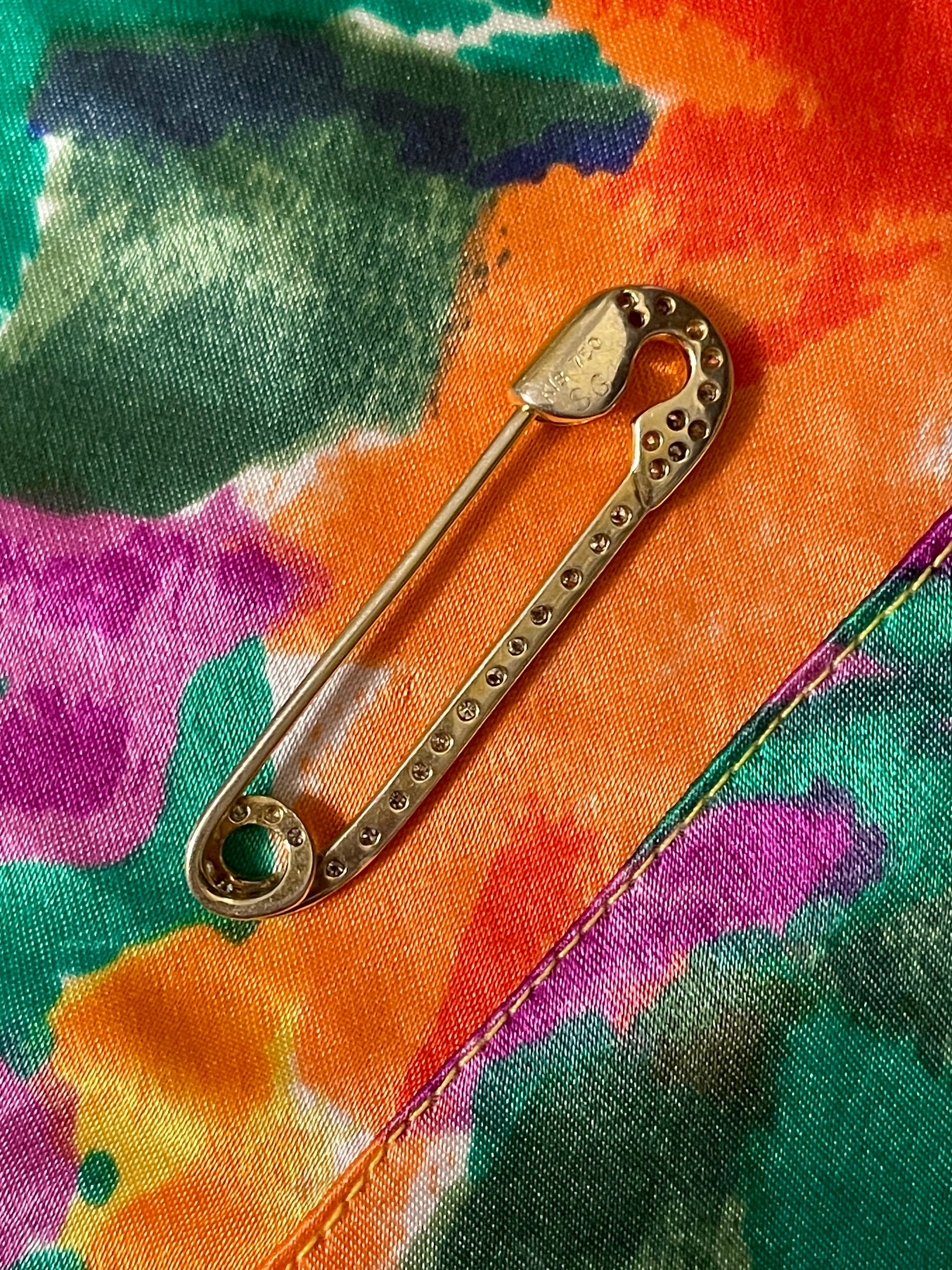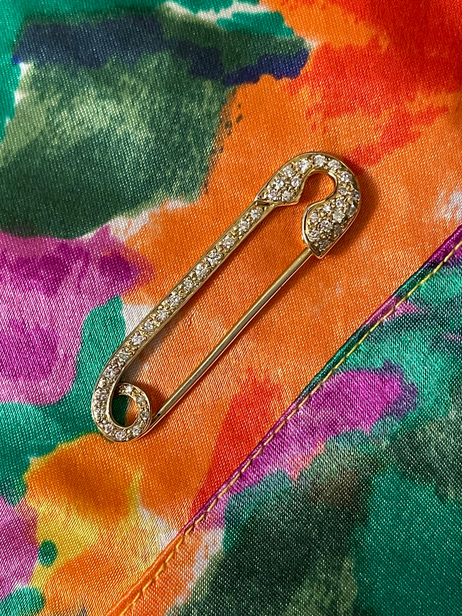 [PRIVATE] Vintage yellow 18K safety pin with approx .11ctw diamonds