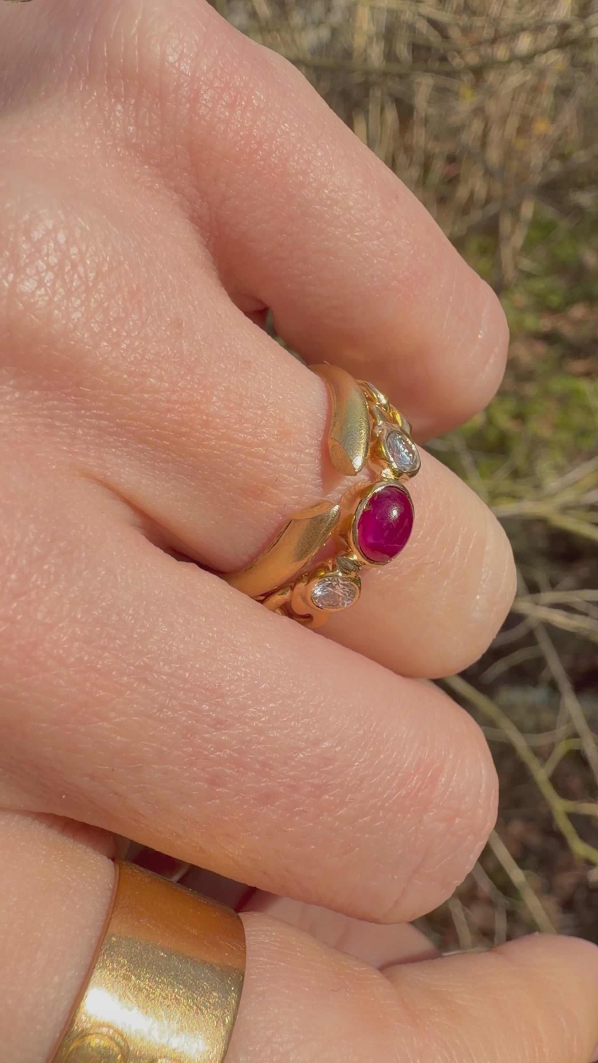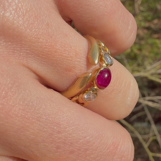 [Listing for Ruby/Diamond only] Super comfortable totally solid Vintage yellow 18K curb chain ring with .3ctw natural bezel set Ruby cabochon and .3ctw bezel set diamonds. Made with repurposed solid buttery vintage 18K gold chain and vintage natural gemstones.