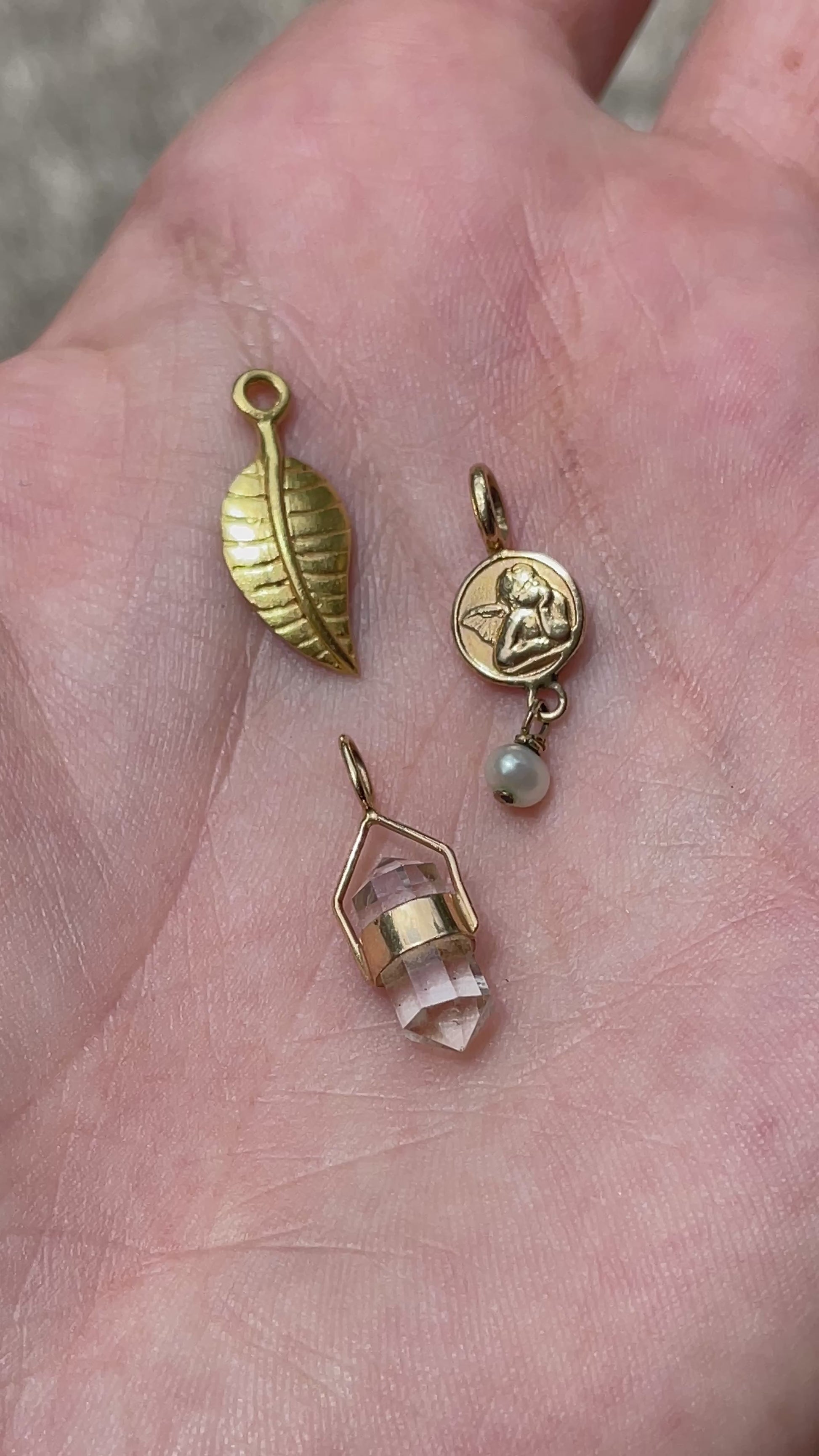 Vintage yellow 22K gold leaf charm