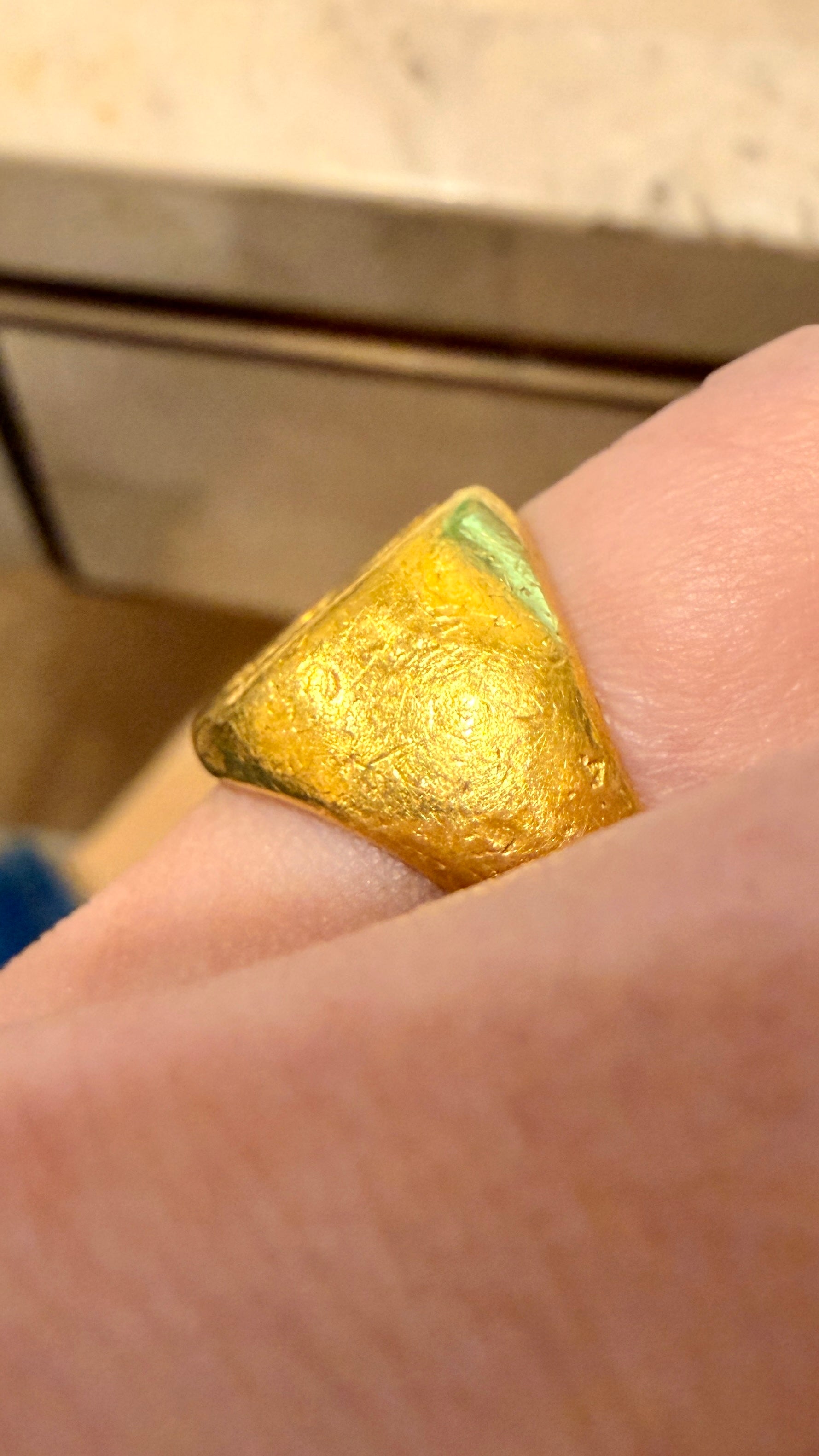 Vintage yellow 22K Griffin carved signet ring, size 6.25