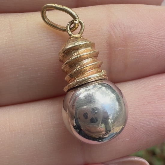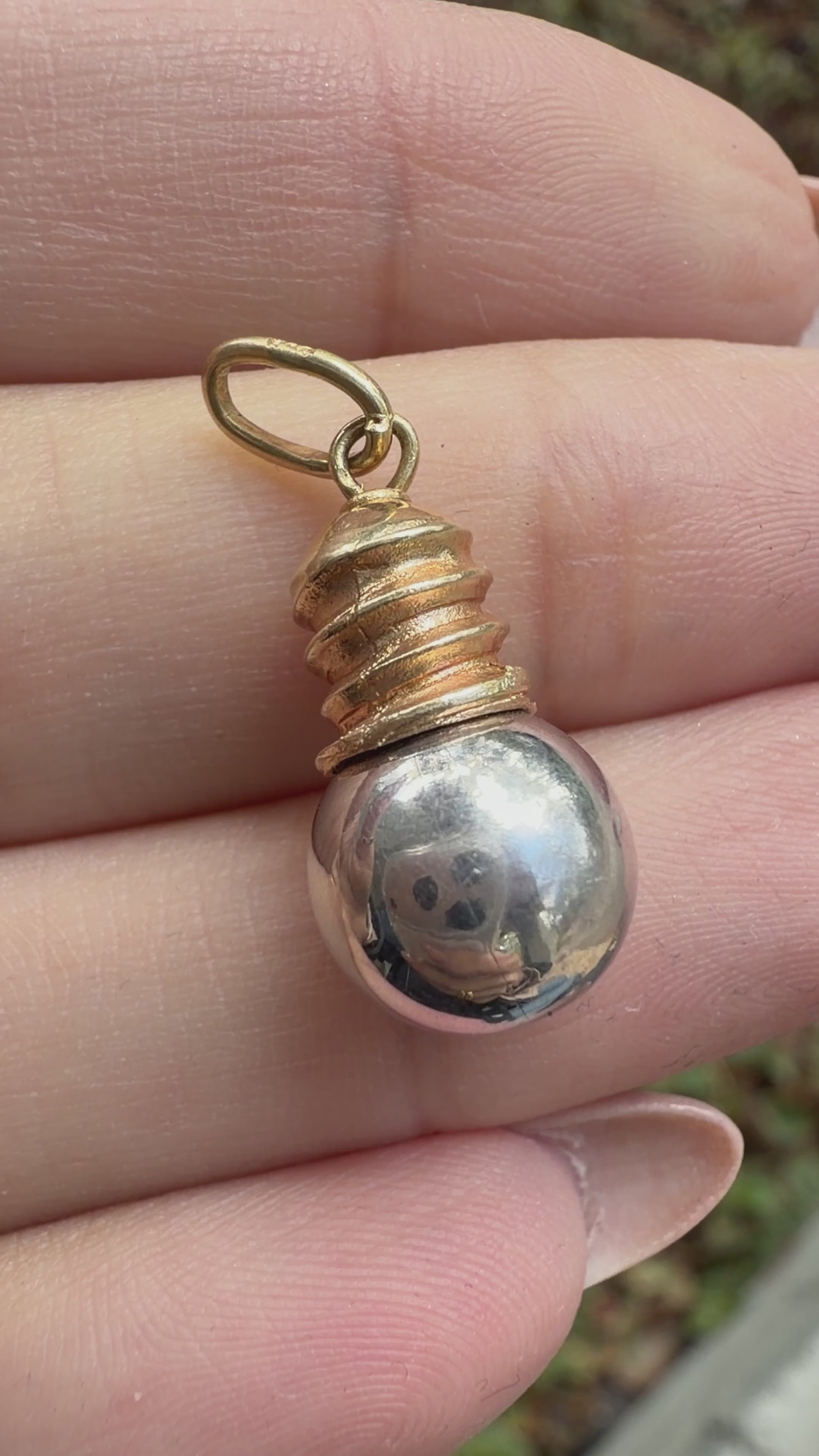 So cute Vintage yellow and white 14K lightbulb charm in 3D. Measures 25.3 mm long x 10.1 mm wide and weighs 2.7 grams. Bale opening 5.6 mm. Very good preowned condition. Hallmarked.